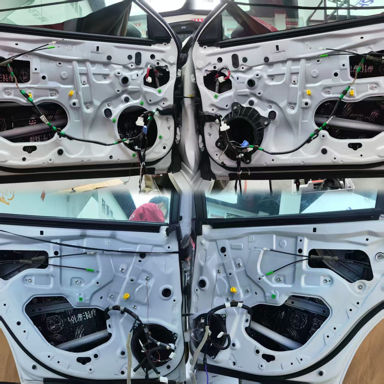 四門內(nèi)外鋪上俄羅斯北冰熊減振板,抑制車門鋼板的振動,減少共振,降低外界噪音傳入。