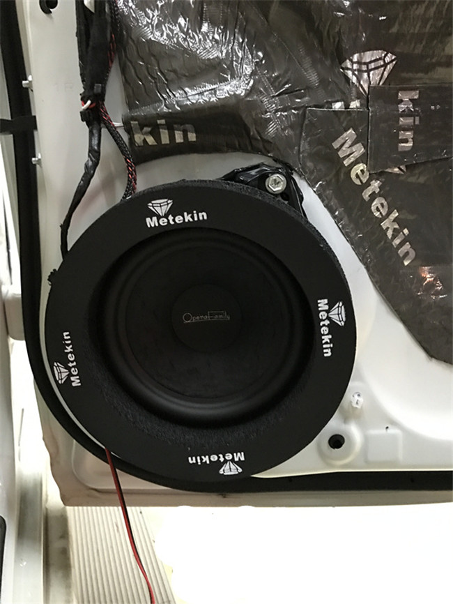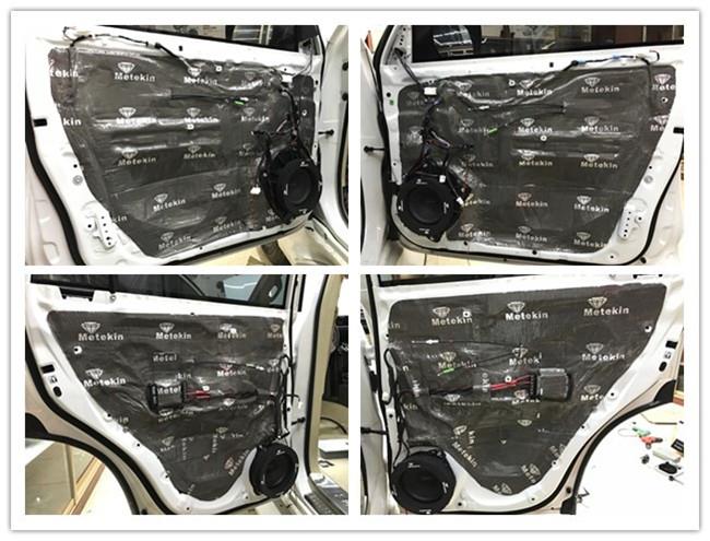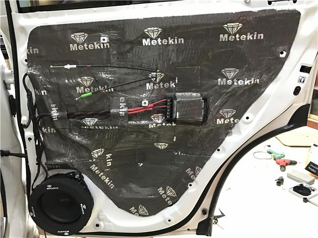 門板的風噪串入很強,所以用雙層美特靜灰鉆減震板進行加固密封,降低噪音的同時給中低音塑造一個更好的工作環(huán)境。