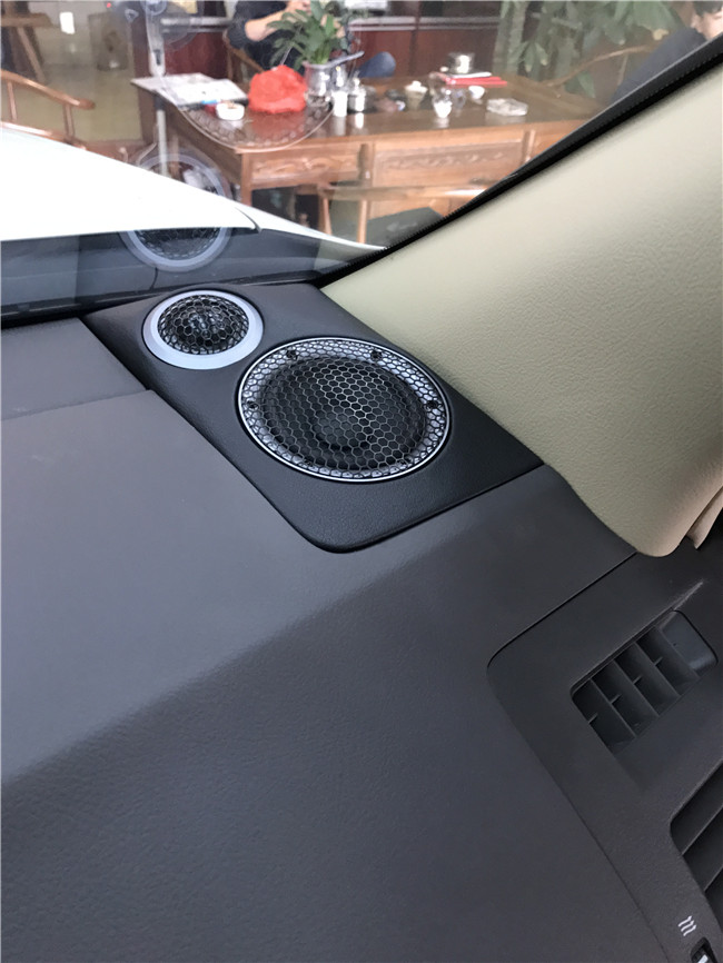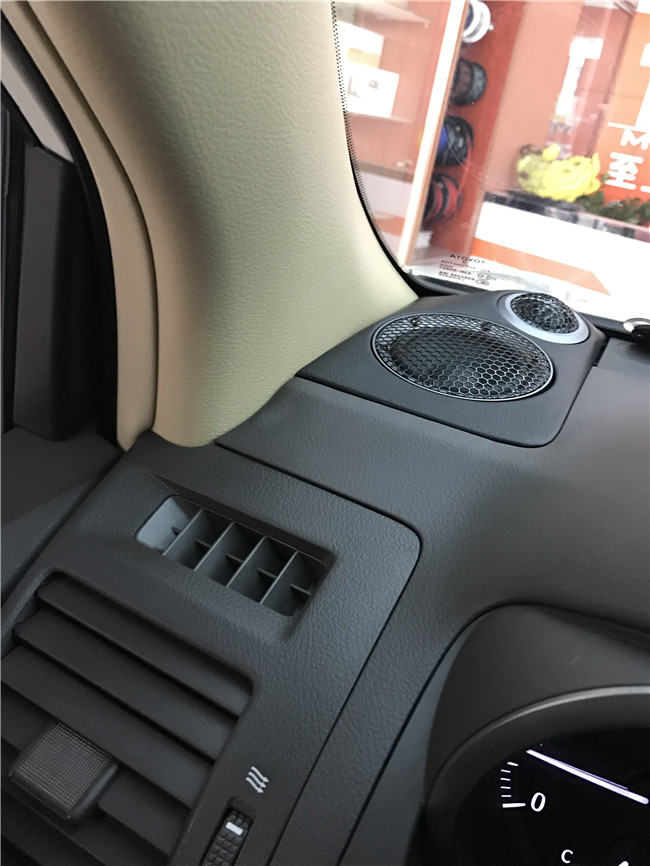 歌劇世家VS365中高音倒模安裝,和其它車型的三分頻倒模不一樣的是它倒模在儀表臺,高音中音做同一水平直線,高音微微向上,這樣的安裝讓聲音銜接更好,聲場更加準確,師傅專門給車主量身定制。