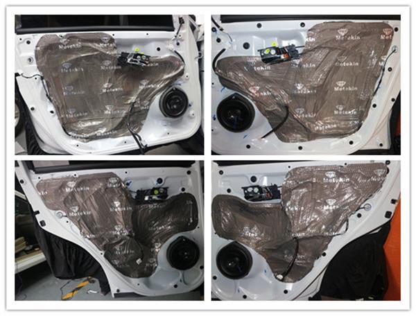 車門內(nèi)層使用美特靜減震板加固鈑金,有效減少共振噪音。