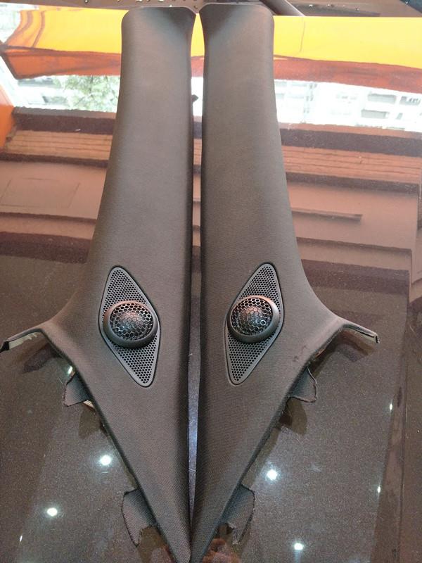 別克君越原車高音位在A柱,改裝技師對英國正弦波S1-62高音進(jìn)行原位倒膜安裝,得到更理想音效。