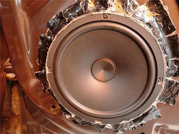 前聲場英國正弦波S1-62中低音原位安裝,改裝技師不僅加裝了專用墊圈,還用隔音材料對喇叭邊緣進(jìn)行固定密封,使喇叭發(fā)揮更出色。