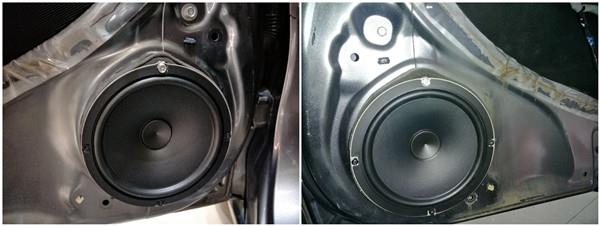 英國正弦波S1-62中低音原位替換安裝效果。為了能讓喇叭靜靜地工作,改裝師很負責地為中低音加裝了喇叭圈、防水罩等專業(yè)的配件,讓喇叭盡情地,“心”無旁騖地發(fā)揮自己的專長!