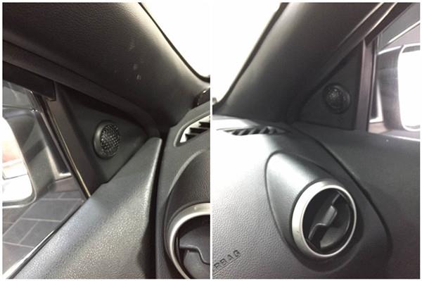 前聲場(chǎng)選用了一套英國(guó)正弦波S3兩分頻喇叭,其中高音單元倒膜安裝在車門三角位上,結(jié)合起來讓聲音穿透性和聲場(chǎng)相位更為精準(zhǔn),聲音表現(xiàn)細(xì)節(jié)豐富;而6.5寸中低音單元?jiǎng)t安裝在前門原喇叭位置,專用木墊圈和防水罩的安裝,保證了喇叭能夠輸出超穩(wěn)定的音質(zhì)。
