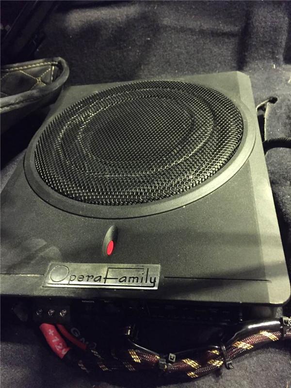 在逍客的前排座椅底下放置了低音,是歌劇世家的U3超薄電磁炮,相比于普通的低音炮,這款超薄設(shè)計(jì)的低音除了空間上占盡優(yōu)勢(shì)外,在聲音的表現(xiàn)上也有大動(dòng)態(tài)而不失真,并且易于安裝布置。
