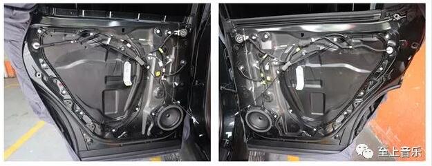 雷克薩斯Rx300原車門構(gòu)造,隔音措施欠缺,需要進行隔音處理。