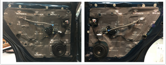 想要享受到高品質(zhì)的音響效果,車門隔音也是相當(dāng)重要的,由于奧迪Q7原車門板內(nèi)部隔音措施做的稍微有些欠缺,導(dǎo)致喇叭不能發(fā)揮到很好的效果。因此,改裝技師使用美特靜隔音材料,對汽車門板進行雙層的隔音止振處理,讓門板變得更加厚實,隔音有效的阻隔了風(fēng)噪與共振噪音的產(chǎn)生和傳入。