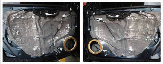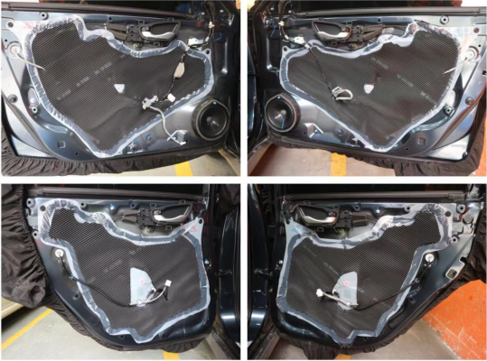 將原車的劣質(zhì)隔音材料清理干凈之后,把裁剪好的隔音材料對門板進行了雙層隔音處理,這不僅有效抑制的了風(fēng)噪的傳入,同時還為汽車的聲場喇叭創(chuàng)造了一個良好的工作環(huán)境,使得音響系統(tǒng)的音質(zhì)更加出色。