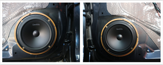 在音響器材的選擇上,車主平時聽人聲比較多,因此,前聲場選用歌劇世家F-25兩分頻套裝喇叭,這一套喇叭它有著高清晰度、高解析力,明亮演繹能力等特點,非常適合各種音樂風(fēng)格,在人聲上的表現(xiàn)更為突出。