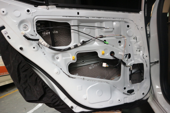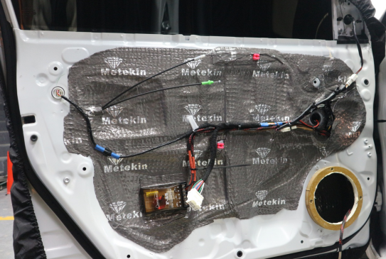車門雙層隔音處理之后的效果圖,關(guān)門聲音非常飽滿厚實,還能提升喇叭工作環(huán)境。