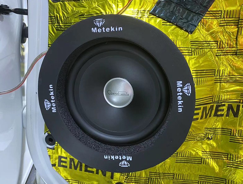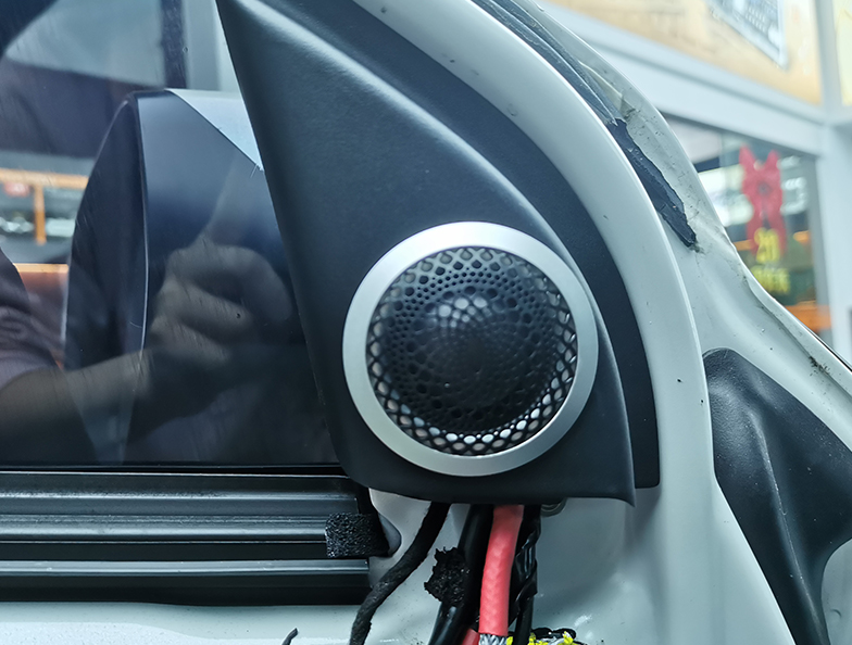 在進行改裝前,我們首先對原車音響進行了全面的檢測和評估。我們發(fā)現(xiàn)原車音響的功率較小,無法滿足車主的需求。因此,我們?yōu)樗扑]了一套高品質(zhì)的音響系統(tǒng),包括DSP功放、前后聲場喇叭和低音炮等,另外車門也做了隔音降噪處理。