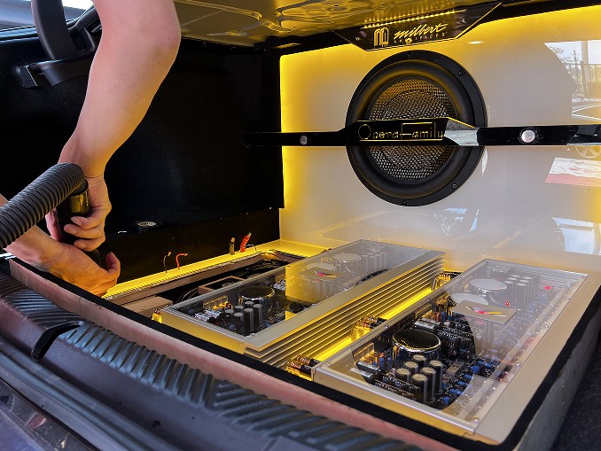 安裝兩臺(tái)歌劇世家BA86六路功放、一臺(tái)歌劇世家BA82兩路功放推動(dòng)聲場(chǎng)喇叭發(fā)聲,展現(xiàn)出音樂(lè)的豐富質(zhì)感、細(xì)膩層次與深邃立體感,雜音與失真被有效抑制。歌劇世家ONE.S.12碳纖低音炮,發(fā)揮很好的低音效果,同時(shí)伴隨著環(huán)繞聲,使得音樂(lè)在車?yán)锫?tīng)起來(lái)更加地渾厚好聽(tīng)。