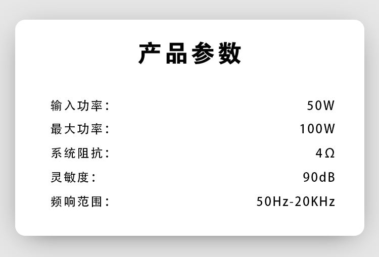 靈敏度:89dB / 系統(tǒng)阻抗:4Ω / 額定功率:40W / 最大功率:80W 高音采用25芯日本昭和特殊隆絲膜,釹鐵硼強磁磁鐵; 6.5寸低音采用進口聚丙烯音盆,NBR橡膠邊,音盆既有剛性振膜的低音形態(tài),低頻下潛淺,厚實有力,又有后潤的中頻表現(xiàn)。
