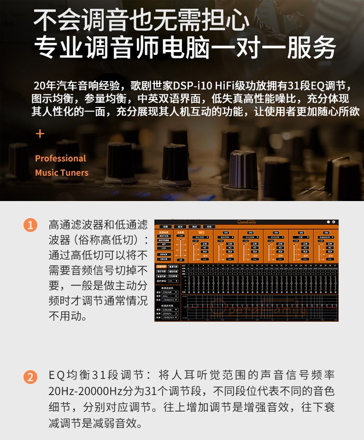 專車專用汽車音響功放DSP-i10采用專車專用線材,實(shí)現(xiàn)三百多種車型與原車對接而不破壞原車的線路,實(shí)現(xiàn)無損升級音響系統(tǒng)。擴(kuò)張用的8路RCA輸出,滿足音響愛好者大的可玩空間。