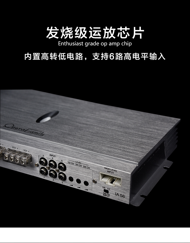 THD+N:<0.05% 信噪比:>90dB 頻率響應(yīng):10Hz-25KHz±1dB 輸入靈敏度:0.5V-5V 輸入阻抗:47KΩ 待機(jī)電流:<0.1A RMS輸出功率:6x90W 歌劇世家IA 56六通道功放:是一款前級放大器采用直通設(shè)計,能避免高低通濾波電路干擾,使得聲音更干凈平衡;高純度銅鍍銀接線端子及RCA信號輸入端子;內(nèi)置高轉(zhuǎn)低電路,支持6路高電平輸入;采用發(fā)燒級運(yùn)放芯片。